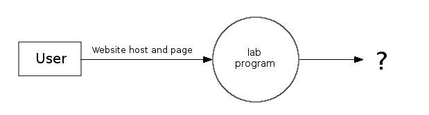 1. The user enters host and page data on the command-line. 2. The lab3sget program starts running and converts the input data into some kind of output data, then it flows on to some other entity, like maybe the Odin server using some kind of protocol like maybe HTTP. 3. You wrote and put into place many of the components of this system. Show where they fit in to your DFD. 4. The HTTP protocol is a request-response protocol. This means that data flows outward and then something comes back. Show it. 5. Your diagram probably should not have: a cloud, a router, wifi, a modem, a keyboard, a stick person, a dragon, a puppy, a C++ program, etc. Try to build a perfect and clean DFD. Generally follow these rules as a guide... 1. Each function should have at least one input and an output. 2. Each file/database should have at least one data flow out. 3. Data stored in a system must go through a process. Name your diagram: my_dfd4.gif