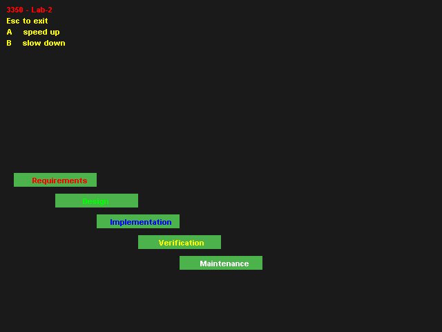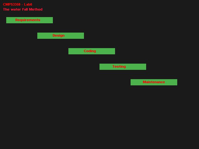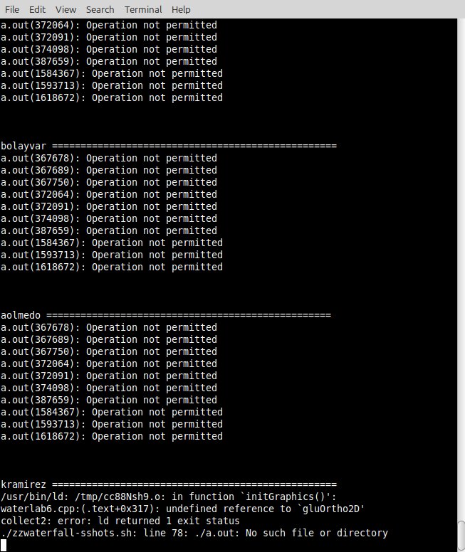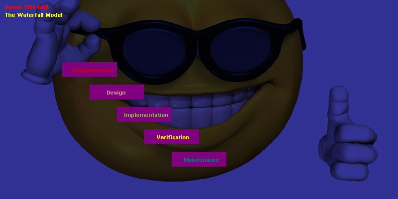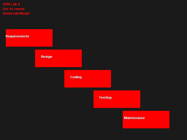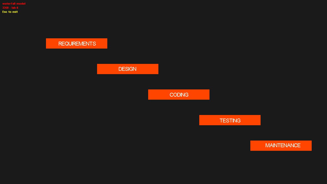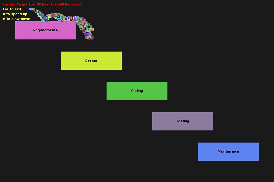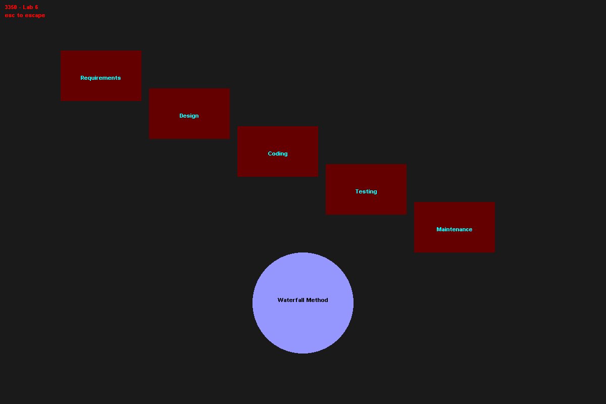 Waterfall model screen shots This was lab-6 (homework) updated: Apr 28 Images were produced by running your program, then using Imagemagick import. 1 program had water flowing when they started. Some programs are incomplete or have syntax/compile errors. Some programs look very nice.